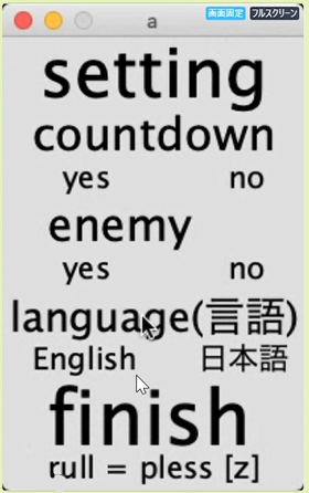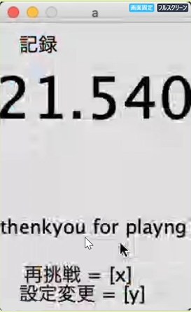 前半の授業ではTIME GAMEと銘打ったⅯ君のボールを弾ませて画面内に収めている時間を競うというサッカーで言うところのリフティングをクリックで続けるゲームです。しかし、なぜか、ダミーのボールがあるので、どちらをクリックするのが正解なのか、作者もわからないという恐ろしく難易度の高いゲーム性(笑)。色で決まっているのかと思ったら、全然決まってなくて、どちらも虹色に変化するので本当にどちらをクリックすればいいのかわかりません。とはいえ、クリックする場所はどこでもいいので、下に落ちないように、そして上につかないようによく見ながらタイミングよくクリックすればいいものです。それでもさすがに難易度が高すぎるので、EASYモードは白いボール1個だけでした。それでも、プレイしたら難しいんだろうな…作者もあっという間にゲームオーバーしているときもありました。