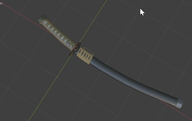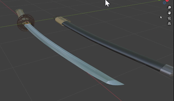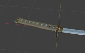 と言いながら…すみません、この時、画像が撮れておらず、後日(12月1日)改めて見せてもらうと、めっちゃ進化していました!鞘も柄もしっかり出来上がっていた~!さらに、やっぱり刀身の刃文までテクスチャーで再現されていました。緻密!細部にもこだわりが見えて、モデルで出来ないところはテクスチャーで再現!すごいなあと感心してしまいます。
