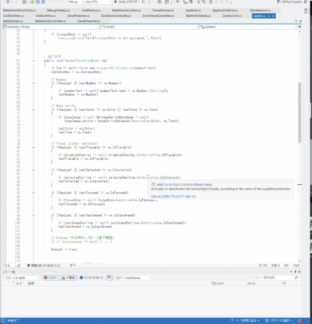 Kくんが現在取り組んでいるのは、Unityを使ったカードゲームです。