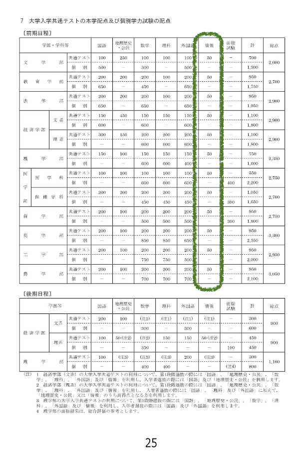 5 大学入学共通テストの「情Ⅰ」(※印)は配点合計に含めません。