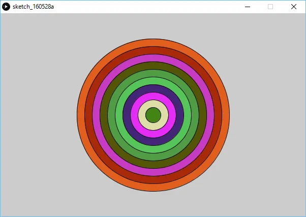 - それぞれの円はfill()とrandom()を使っていろんな色にしてください。