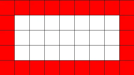 for (int i = 0; i < 9; i++){ // 2次元配列の横の長さ分繰り返す for (int j = 0; j < 5; j++){ // 2次元配列の縦の長さ分繰り返す if (map[j][i] == 0){ fill(255, 255, 255); } else if (map[j][i] == 1){ fill(255, 0, 0); } rect(i * 50, j * 50, 50, 50); //1マス50の大きさ }}表示すると赤の壁に囲まれたマップができました!スート地点とゴールを決めて、迷路を作ってみよう!